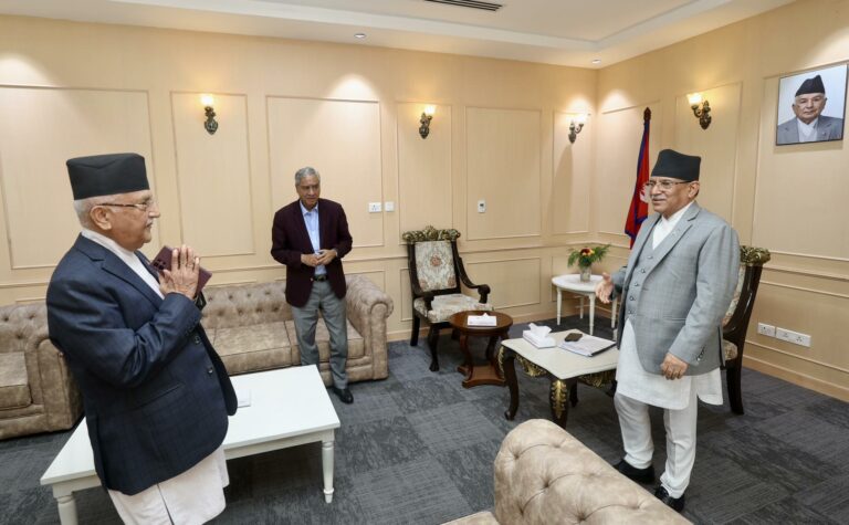 प्रमुख प्रतिपक्षी दल एमालेले प्रधानमन्त्री दाहालको राजीनामा मागेर सदन अवरोध गरिरहेको छ । यसअघि आजै विहान बसेको सत्ता गठबन्धनको बैठकले सदनको अवरोध हटाउनको लागि एमालेसँग छलफल गर्ने निर्णय गरेको थियो । सोही निर्णयअनुसार प्रधानमन्त्री दाहालले ओली र देउवासँग छलफल गरेका हुन् ।