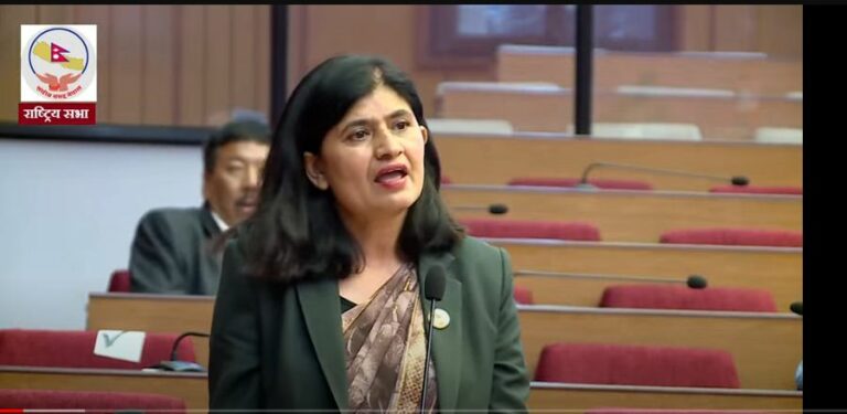 राष्ट्रिय सभाको बैठकमा बोल्दै न्यौपानेले विगतमा पनि बारम्बार देशलाई धोका दिनका लागि भारतसँग मिलेर कम्फर्टेबल सरकार बनाउने अभिवयक्ति दिँदै आएका प्रधानमन्त्री दाहालले यसपटक आफ्नो कुर्सी जोगाउन हद पार गरेको आरेप लगाईन् ।