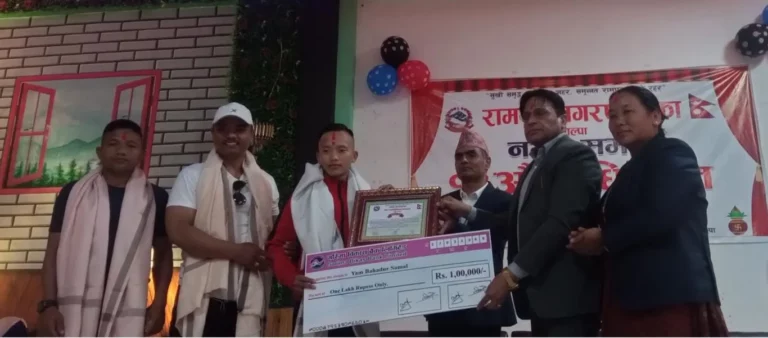 रामपुर (पाल्पा), २९ असार । रामपुर नगरपालिकाले स्वर्ण पदक जित्ने कराते खेलाडीलाई पुरस्कृत गरेको छ । दक्षिण कोरियामा हालै सम्पन्न सम्पन्न १५औँ कोरिया ओपन कराते प्रतियोगितामा स्वर्ण जित्ने रामपुरका यमबहादुर समाललाई एक लाख नगदसहित पुरस्कृत गरेको हो ।