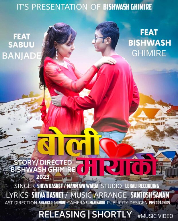 काठमाडौं, २९ असार । विश्वाश घिमिरे र सबु बन्जाडेको अभिनयमा रहेको “बोली मायाको” गीतको पोष्टर सार्वजनिक भएको छ । उक्त गीत चर्चित गायक शिव बस्नेत र मनमाया वाईवाको स्वरमा रहेको छ ।