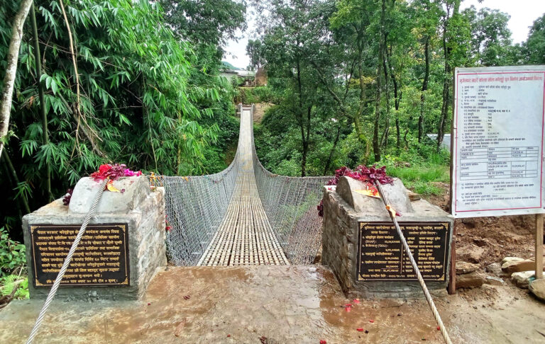 पुल बनाउनका लागि निःशुल्क जग्गादान गर्नुहुने जग्गादाता दलबहादुर भुजेल (बायाँ किनारा) र भीमकुमारी लम्साल/जगतबहादुर शाही (दायाँ किनारा)लाई सम्मान गरिएको थियो । पछिल्लो समय नेपाल सरकार झोलुङ्गे पुल क्षेत्रगत कार्यक्रमबाट जिल्लाका दुर्गम तथा विकट बस्तीमा धमाधम पुल निर्माण भइरहेका छन् । यसबाट विकट गाउँका नागरिकलाई लाभ पुगेको छ ।रासस