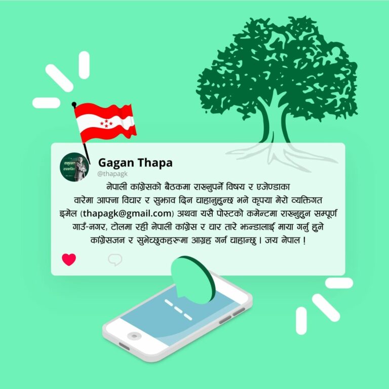 काठमाडौं, ३१ असार । नेपाली कांग्रेसका महामन्त्री गगन थापाले केन्द्रीय समितिको बैठकका लागि सुझाव मागेका छन्।