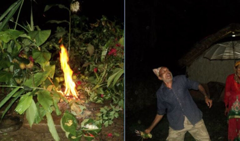 लुतो फाल्दा आआफ्नो कूल परम्परा अनुसार नाङ्लो ठटाउने, शङ्ख फुक्ने, घण्ट बजाउने, ढोका बन्द गर्ने चलन नेपाली समाजमा छ। साउन महिनालाई विशेष रुपमा भगवान् शिवको पूजा गरेर मनाइन्छ।