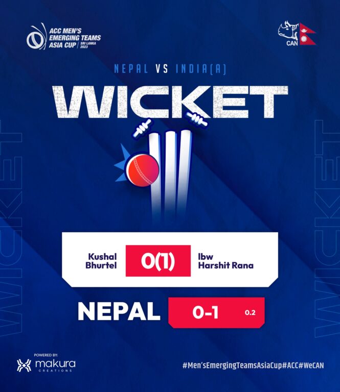 उक्त खेलमा कुशल भुर्तेल दोस्रो बलमै आउट भएका छन् ।
