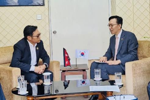 काठमाडौं, ४ साउन । नेपालको लागि गणतन्त्र दक्षिण कोरियाका राजदूत ताई योङ पार्कले संस्कृति, पर्यटन तथा नागरिक उड्ययनमन्त्री सुदन किरातीसंग शिष्टाचार भेटवार्ता गरेका छन् । सिंहदरबारस्थित् मन्त्रालयमा भएको भेटवार्तामा दुई देशबीचको सहकार्यको विषयमा कुराकानी भएको हो ।