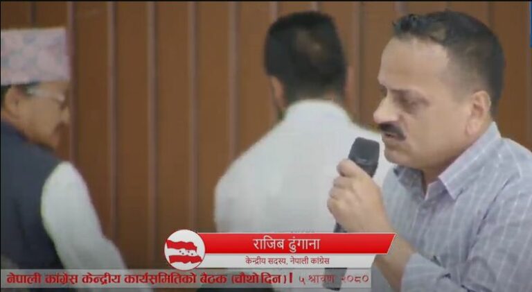 शुक्रबार पार्टीको केन्द्रीय कार्य समितिको बैठकमा आफ्नो धारणा राख्ने क्रममा ढुंगानाले कोही नेताले सभापति शेरबहादुर देउवालाई र कोहीले महामन्त्रीद्वय गगन थापा र विश्वप्रकाश शर्मालाई खुइल्याउने प्रतिस्पर्धा गरिरहेको भन्दै असन्तुष्टि जनाएका हुन् ।