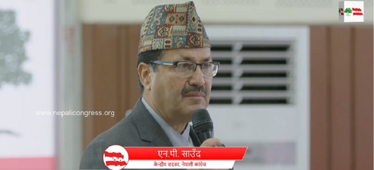 काठमाडौँ, ७ साउन । नेपाली कांग्रेसका नेता एवं परराष्ट्रमन्त्री एनपी साउदले विपक्षी दलबाट नेपाली सेना, मुलुकको परराष्ट्र नीति र विदेश सम्बन्धमाथि प्रहार भइरहेको बताएका छन् ।