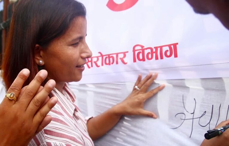 ‘सुशासनमा प्रचढड सरकारको सरोकार, भ्रष्टाचारविरुद्ध नागरिक हस्ताक्षर’ नारा दिएर अनेरास्ववियु (क्रान्तिकारी) ले भ्रष्टाचारविरुद्ध सकरारको अभियानमा समर्थनका लागि बृहत्त हस्ताक्षर अभियान सुरु गरेको अध्यक्ष पञ्चा सिंहले जानकारी दिईन् ।