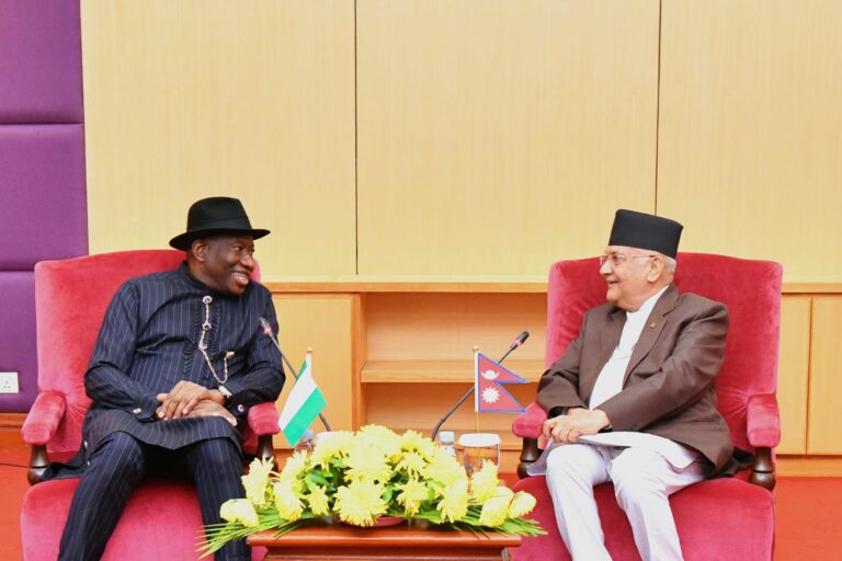 काठमाडौं,८ साउन । नेकपा एमालेका अध्यक्ष केपी शर्मा ओलीले नाइजेरियाका पूर्व राष्ट्रपति गुडलक जोनाथन र श्रीलङ्काका पूर्व राष्ट्रपति तथा वर्तमान संसद मैत्रीपाला सिरिसेनासँग भेटवार्ता गरेका छन् ।