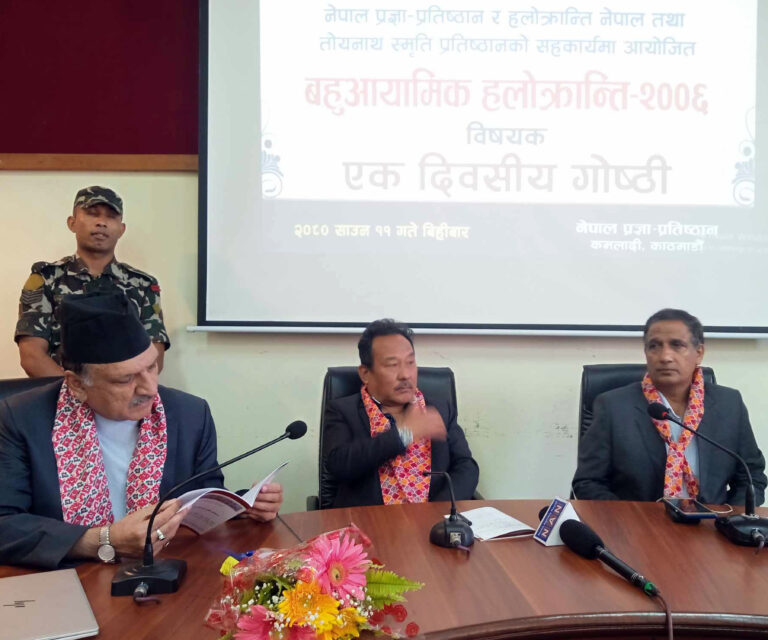 नेपाल प्रज्ञा प्रतिष्ठान र हलोक्रान्ति नेपाल तथा तोयनाथ स्मृति प्रतिष्ठानको सहकार्यमा आज यहाँ आयोजित बहुआयामिक हलोक्रान्ति-२००६ विषयक एक दिवसीय विचार गोष्ठीमा उनले दुराडाँडाको हलोक्रान्ति चेतना र क्रान्तिको सुरुवात भएको धारणा राखे ।