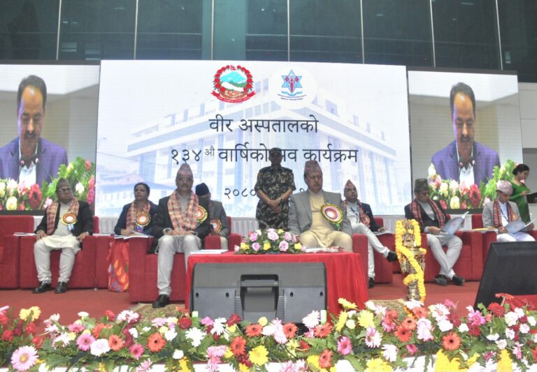 काठमाडौं, १२ साउन । वीर अस्पतालले आफ्नो १३४औं वार्षिकोत्सव मनाएको छ । वार्षिकोत्सव समारोहका प्रमुख अतिथिका रुपमा स्वास्थ्यमन्त्री मोहनबहादुर बस्नेत रहेका थिए ।