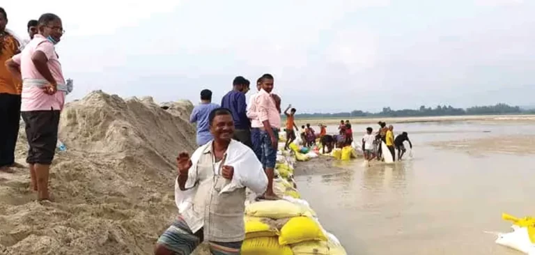 अस्थायी तटबन्ध निर्माण गर्नका लागि फलामका पाइप, बाँसको टाँटी र सिमेन्टको बोरामा बालुवा राखेर तटबन्ध निर्माण गर्न सुरु भएको हो । यस कार्यमा सशस्त्र प्रहरी, नेपाल प्रहरी र स्थानीयवासीको पनि सहभागिता र सहयोग छ ।