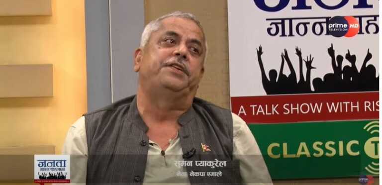 हिजो (शनिबार) प्राइम टाइम्स टेलिभिजनको ‘जनता जान्न चाहन्छन्’ कार्यक्रममा पत्रकार ऋषि धमलासँग संवाद गर्दै उनले प्रधानमन्त्री प्रचण्डले माओवादी शिविर घोटलाको फाईल नखोलेको, भुटानी शरणार्थी प्रकरणको छानविनलाई बीचमै रोकेको, माओवादी नेता कृष्णबहादुर महरा र उनका छोराको नाम सुन प्रकरणमा पटक-पटक जोडिदा पनि छानविन नगरेको लगायतका आरोप लगाउँदै उनले प्रचण्ड नेतृत्वको सरकारले ऐतिहासिक रेकर्ड कायम गरेको बताएका हुन् ।