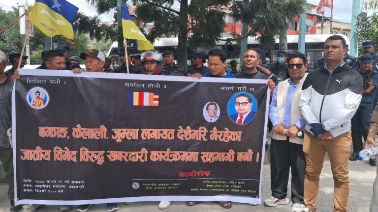 देशैभरी जातीय विभेदका घटना बढ्दै गएपछि सरोकारवाला संघ संस्थालो आज काठमाडौंमा खबरदारीसभा आयोजना गरेका छन् । नेपाल बैद्ध अम्बेडगर महासभा दलित आत्मरक्षा अभियान, संघीय लोकतान्त्रिक राष्ट्रिय मञ्च, नेपाल दलित मुक्ति अभियान र मंगोल नेशनल अर्गानाइजेशनलगायतका संघ संगठनले काठमाडौंको माइतीघरमा खबरदारी सभा आयोजना गरेका हुन् ।