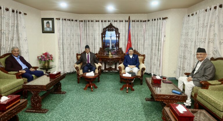 यसैबीच सभामुख देवराज घिमिरेले प्रमुख तीन दलका शीर्ष नेताको बैठक बोलाएका छन् । संसदको गतिरोेध हटाउन सभामुख घिमिरले नेपाली कांग्रेस, एमाले र माओवादी केन्द्रका शीर्ष नेतासँग छलफल गर्न लागेको उनको सचिवालयले जनाएको छ ।