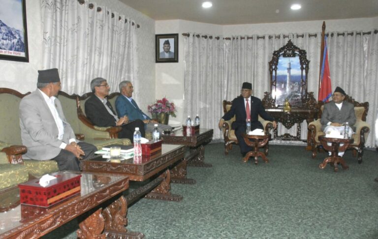 आजको छलफलमा प्रधानमन्त्री प्रचण्डसँगै एमाले अध्यक्ष केपी शर्मा ओली र कांग्रेस सभापति शेरबहादुर देउवा उपस्थित थिए ।