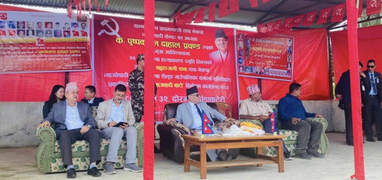प्रधानमन्त्री प्रचण्डको साथमा उपमहासचिव जनार्दन शर्मा, बागमती प्रदेशका मुख्यमन्त्री शालिकराम जम्कट्टेललगायतका नेता कार्यकर्ता दोरम्बा पुगेका छन् ।