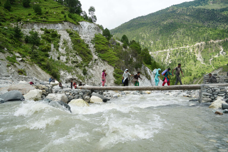 मुगु, ५ भदौ । छायाँनाथ रारा नगरपालिका–१० तल्लेखकी माया बुढा विद्यालयको कामको सिलसिलामा जिल्ला सदरमुकाम गमगढी आउँदा जाँदा गमगाढ खोला तर्नका लागि खोलामाथि राखिएका काठका दुई लाप्का भएर खोला तर्दा काँप्दै खोला तर्ने गर्छिन् ।