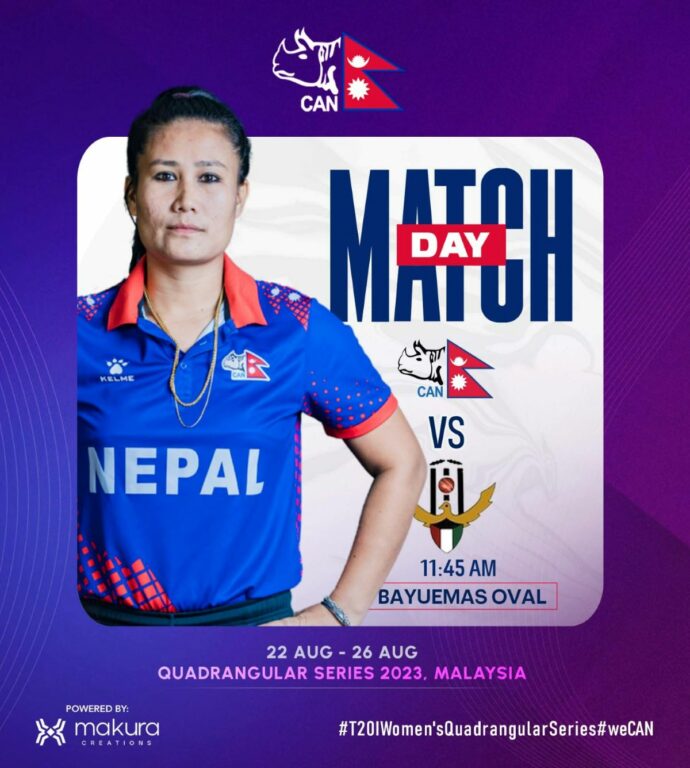 काठमाडौं, भदौ ६। मलेसियामा जारी महिला टि–२० क्रिकेट श्रृंखलाको दोस्रो खेलमा नेपालले आज कुवेतसंग प्रतिस्पर्धा गर्दैछ । पहिलो खेलमा मंगलबार हङकङलाई ६ विकेटले हराएको नेपाल आज बुधबार कुवेतसंग खेल्न लागेको हो ।