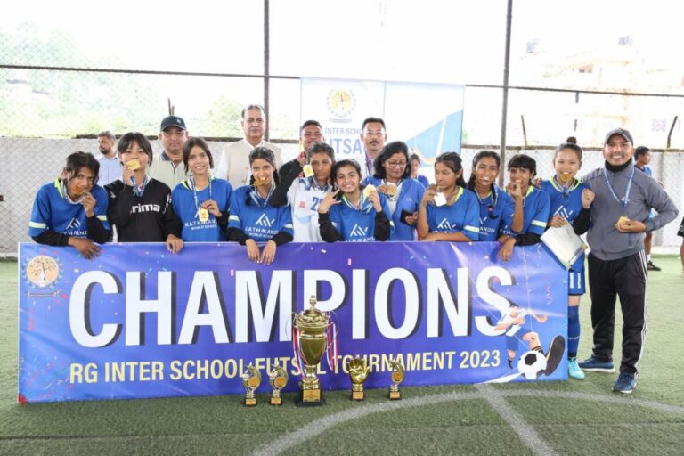 काठमाडौं, १२ भदौ । आयोजक राजर्षी गुरुकूल र काठमाडौं वर्ल्ड स्कुलले आरजी अन्तर स्कुल फुटसल प्रतियोगिताको उपाधि जितेका छन् । राजर्षी गुरुकूल ब्वाइजतर्फ र काठमाडौं वर्ल्ड स्कुल गर्ल्सतर्फ च्याम्पियन बनेको हो ।