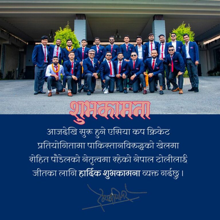 आज एक सन्देश जारी गर्दै घिमिरेले नेपाली टिमलाई जितको शुभकामना दिएका हुन् । नेपालले आफ्नो दोस्रो खेलमा भदौ १८ गते क्रिकेटको अर्को महाशक्ति राष्ट्र भारतसँग प्रतिस्पर्धा गर्दैछ ।