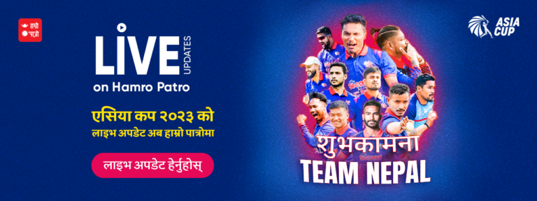 काठमाडौं, १३ भदौ । आज (बुधबार) देखि सुरु हुन गइरहेको एसिया कप क्रिकेट प्रतियोगिताको लाइभ अपडेट हाम्रो पात्रोमै हेर्न सकिने भएको छ । नेपालकै लोकप्रिय एप हाम्रो पात्रोले खेलको लाइभ अपडेट दिने जनाएको हो ।