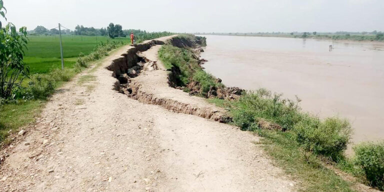 राँझा (बाँके), १७ भदौ । वर्षात् सुरु भएपछि बाँकेको राप्ती सोनारी गाउँपालिका–७ नयाँवस्ती फरेदागाउँका शङ्कर यादव रातिमा राम्ररी निदाउन सकेका छैनन् । “बाढी रोकथामको लागि लगाइएको तटबन्ध भत्किएको वर्ष दिन भइसक्यो, राप्ती नदीले कटान गर्दै गाउँतिर सोझिएको छ”, उनले भने, “ठूलो बाढी आयो भने गाउँमा पसेर बगाउँछ भन्ने चिन्ताले वर्षात्को समयमा राम्ररी निदाउन सकिन्न ।”