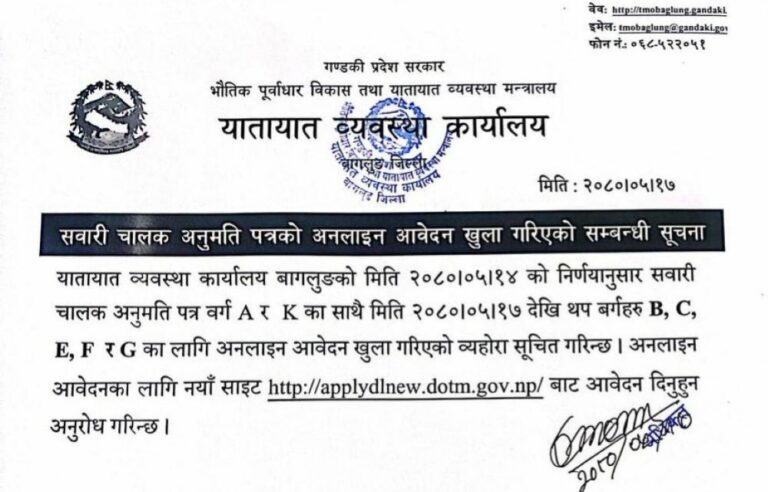 सवारी चालक अनुमतिपत्र सेवालाई सहज र छरितो बनाउन अनलाइन भुक्तानी सेवा गण्डकी प्रदेशबाटै सुरु भएको छ । तत्काललाई कास्कीबाट सुरु भएको उक्त सेवा छिट्टै बागलुङ, तनहुँ र नवलपुर कार्यालयबाट पनि सुरु हुने मन्त्रालयका प्रवक्ता टिकाराम पौडेलले जानकारी दिए ।