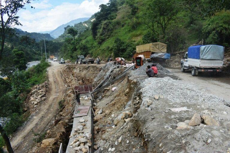 सडकको निर्माण ढिलाइ हुँदा चौतर्फी दबाबका कारण सुरु भए पनि निर्माण सामग्री नहुँदा द्रुत गतिमा काम हुन नसकेको एपेक्स–खड्का–कृष्ण जेभीको सहायक कम्पनी ओमकारेश्वरका प्रतिनिधि अमृत दाहालले बताए । सडकको धेरै ठाउँमा सबबेस र बेस बिछ्याउने अवस्थामा पुगेको तर क्रसर उद्योगका लागि चाहिने कच्चापदार्थ नदीबाट निकाल्न नदिइएका कारण काम रोक्नु परेको उनको भनाइ थियो ।