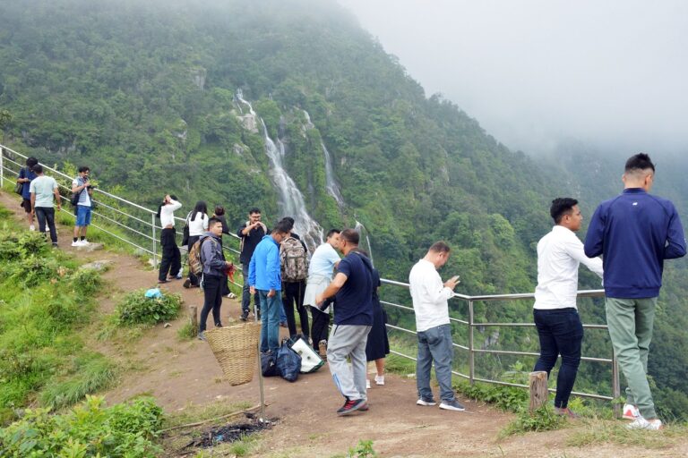 धुलिखेल, २० भदौ । पारि भित्तामा झरना एकनासले सुसाइरहेको छ । वारि डाडाँमा बसेर झरनाको प्राकृतिक मनमोहक दृश्य नियालेर मन्त्रमुग्ध हुँदै तस्बिर कैद गर्नेको दैनिक घुइँचो बढ्दै गएको छ तीनधारे झरना क्षेत्रमा । जहाँ घुम्न जानेहरुको सङ्ख्यामा उल्लेख्य वृद्धि हुँदै गएपछि पहिला झरनाजस्तै सुनसान बनेको काफलडाँडामा अचेल त्यहाँ गएर रमाइरहनेहरुको घुइँचो उत्तिकै छ ।