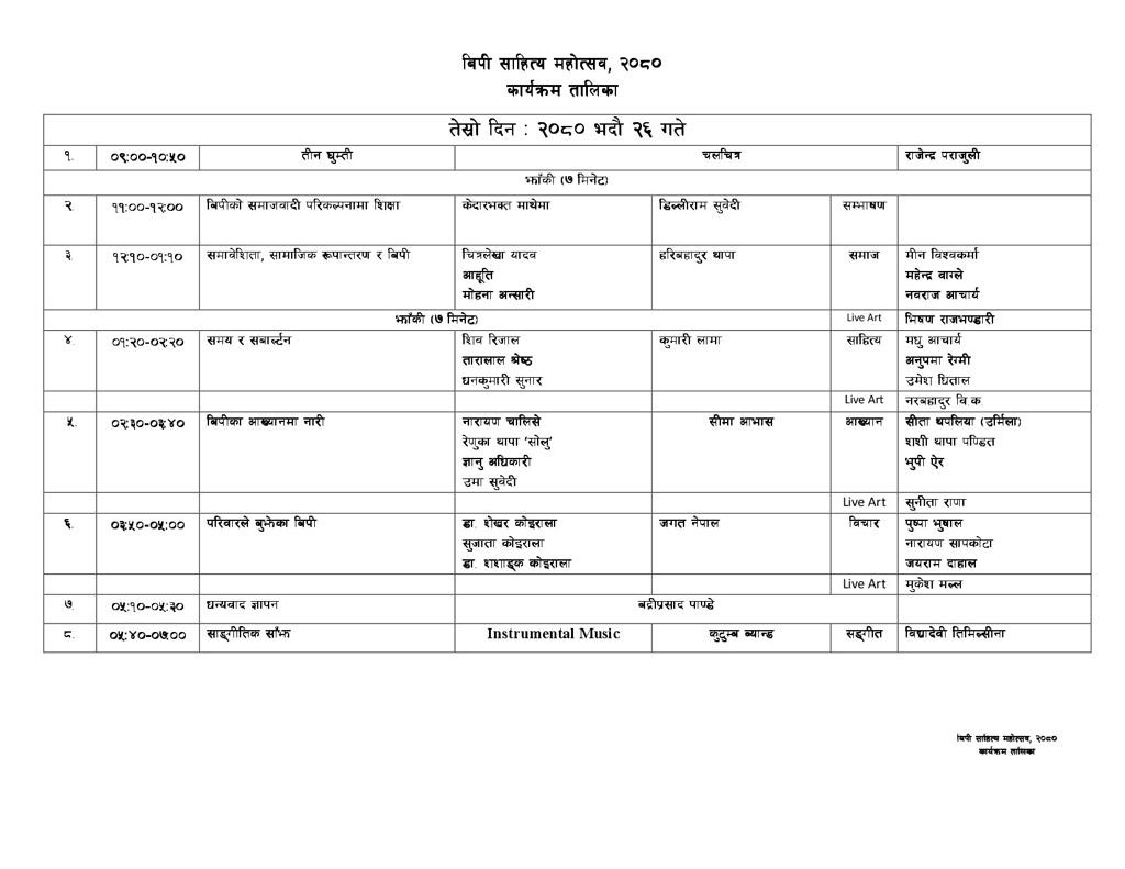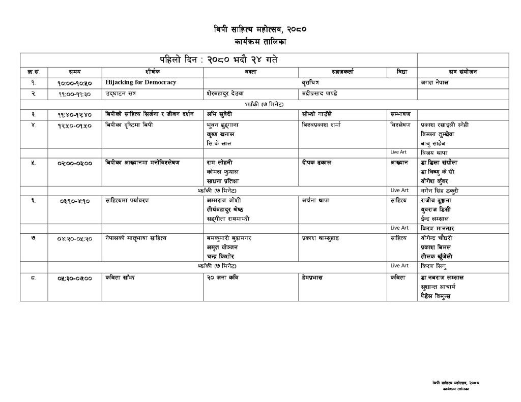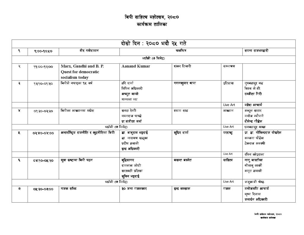 विपी साहित्य महोत्सव–२०८० लाई भव्यरूपमा सम्पन्न गर्न पार्टीका सह–महामन्त्री बद्रीप्रसाद पाण्डेको संयोजकत्वमा समिति गठन भएको थियो ।