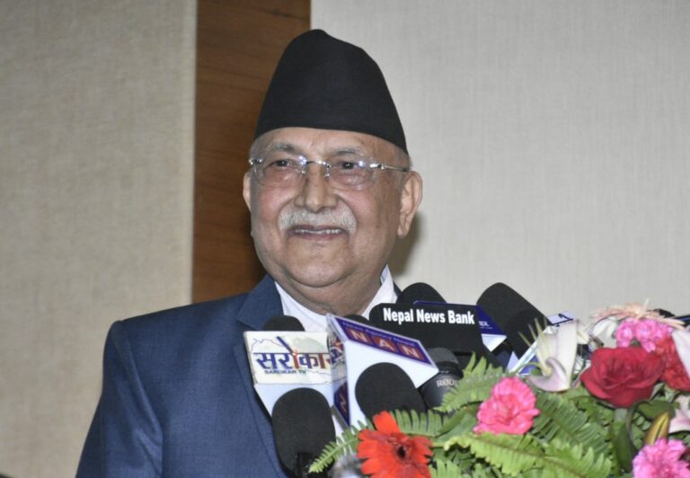 अध्यक्ष ओलीले हामीले आफ्ना कला, संस्कृति, चाडबाड र मौलिक खानपिनलाई जोगाउन पर्नेमा जोड दिए । आफ्नै देशमा भएको प्रकृतिक स्रोत र साधनको प्रयोग र सदुपयोग गर्नुपर्ने बताउँदै उनले विदेशबाट महँगोमा आयत गरेर उपभोग गर्ने बानी छोड्न आग्रह गरे । उनले भने, ‘हाम्रोजस्तो शुद्ध, पवित्र मिनरल पानी पाइने ठाउँमा हामी अरु देशबाट रङ्गिन पानीहरु मगाएर, महँगो पैसा तिरेर पिउने बानी परेका छौं । त्यो हामीले छोड्नुपर्छ ।’ FIle Photo/RN
