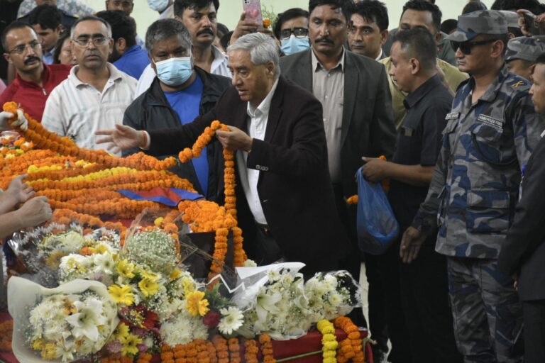 काठमाडौं,२६ भदौ । नेपाली कांग्रेसका सभापति तथा पूर्वप्रधानमन्त्री शेरबहादुर देउवाले पूर्वसभामुख, संविधान सभाका अध्यक्ष तथा एमाले उपाध्यक्ष एवं संसदीय दलका उपनेता सुवासचन्द्र नेम्वाङको पार्थिक शरीरलाई अन्तिम श्रद्धाञ्जली दिएका छन् ।