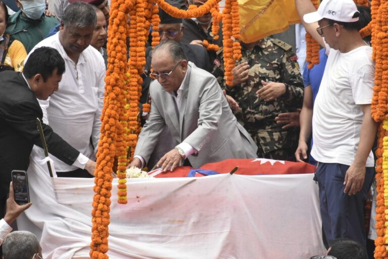 काठमाडौं, २८ भदौ । प्रधानमन्त्री पुष्पकमल दाहाल ‘प्रचण्ड’ ले नेकपा (एमाले) का उपाध्यक्ष स्वर्गीय सुवास नेम्वाङ्प्रति अन्तिम श्रद्धाञ्जली अर्पण गरेका छन् ।