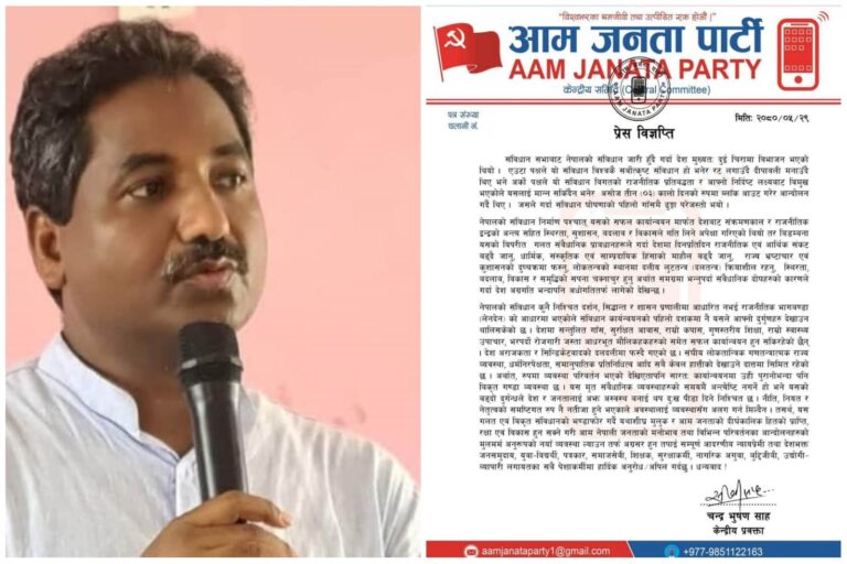 काठमाडौं,२९ भदौ । आम जनता पार्टी (आजपा) ले नयाँ संविधान जारी भएको पहिलो दशकमै यसका दुर्गुणहरू देखिन थालेको दाबी गरेको छ ।