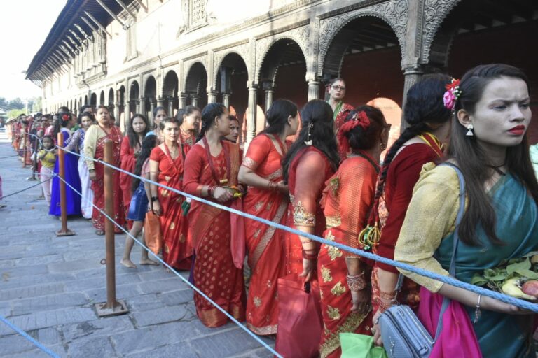 काठमाडौं, १ असोज । नेपाली नारीहरुको महान् चाड तीजमा पशुपतिनाथको दर्शन यसपल्ट विगतभन्दा सहज देखिएको छ । आज बिहान ३ बजेदेखि नै पशुपतिनाथ मन्दिरका तीन वटा ढोका खुलेका छन् । भक्तजनको जुत्ता चप्पल नहराओस् भनेर जुन ढोकाबाट दर्शन गर्न गएको हो, त्यही ढोकाबाट फर्कने व्यवस्था मिलाइएको छ ।