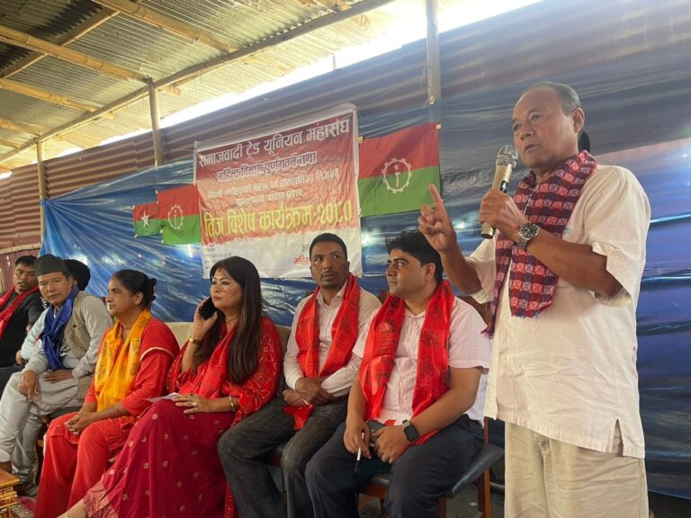 काठमाडौं, १ असोज । समाजवादी ट्रेड युनियन महासंघ अन्तर्गतको महिला विभाग पुनर्गठन भएको छ । हिजो (आइतबार) महिला विभाग पुनर्गठन तथा हरितालिका तिजको शुभकामना आदानप्रदान कार्यक्रमको आयोजनाबाट सोनाम लामाको अध्यक्षतामा १५ सदस्यीय केन्द्रीय विभाग पुनर्गठन भएको हो ।
