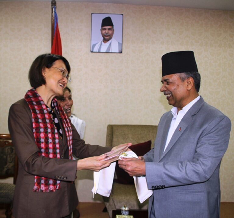 काठमाडौं, १ असोज । नेपाल भ्रमणमा रहेको कम्युनिष्ट पार्टी अफ चाइना (सिपिसी) को युनान प्रान्तको स्थायी समिति सदस्य तथा प्रान्तीय प्रचार विभाग प्रमुख जेङ यानको नेतृत्वको टोलीले आज उपराष्ट्रपति रामसहायप्रसाद यादवसँग शिष्टाचार भेटवार्ता गरेको छ ।