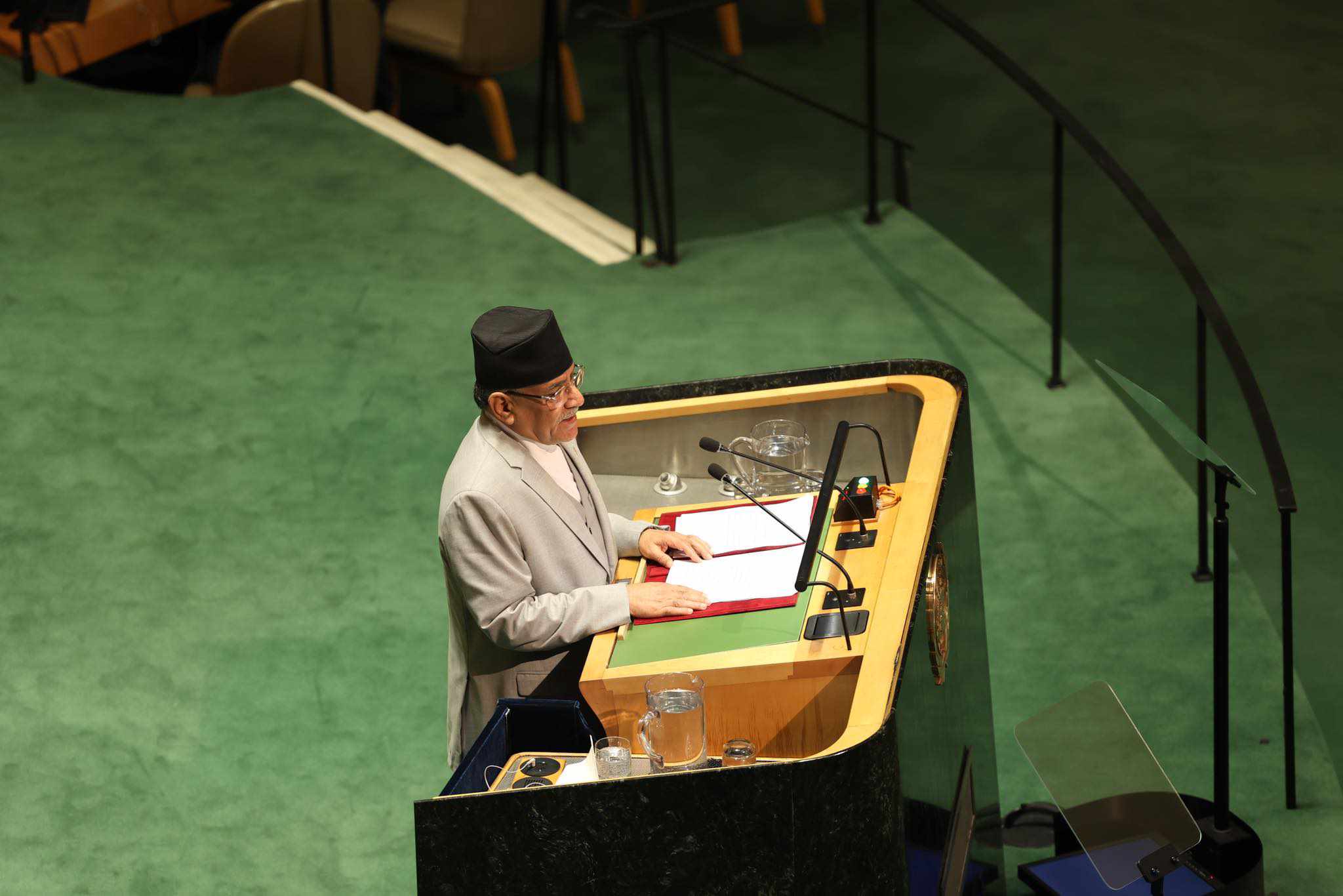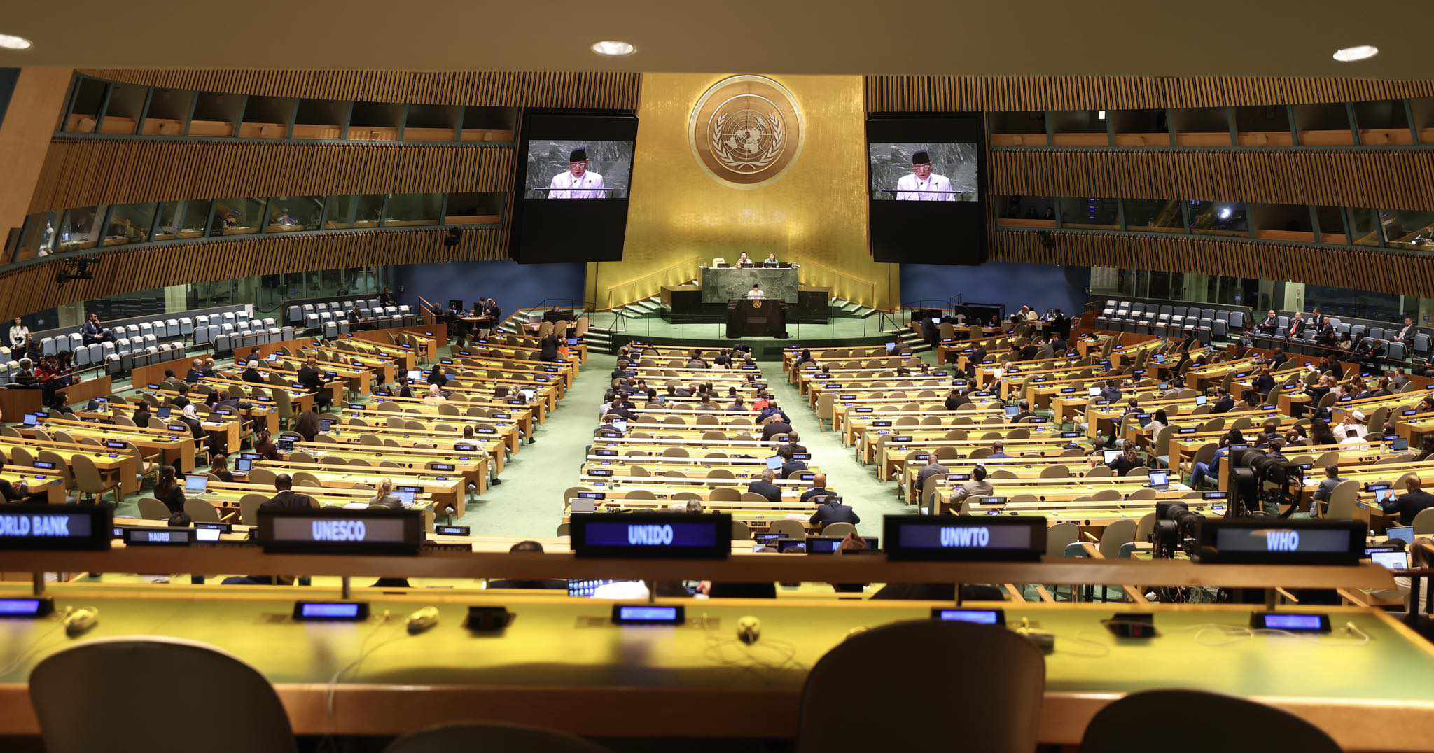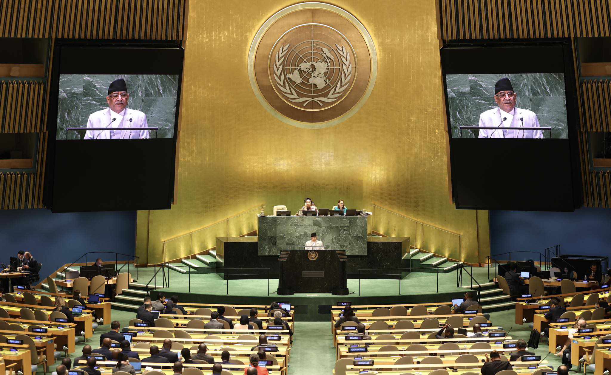 संयुक्त राष्ट्रसङ्घको महासभालाई सम्बोधन गर्नुहुँदै प्रधानमन्त्री प्रचण्डले हतियारमा खर्च बढ्दै जाँदा २०३० को एजेन्डा कार्यान्वयनका लागि स्रोतसाधनको अभाव भएको बताए । यस्तो परिस्थितिलाई सच्याउँदै शान्ति, समृद्धि र प्रगतिका साझा लक्ष्यहरूमा ध्यान केन्द्रित गर्न प्रधानमन्त्री प्रचण्डले विश्व समुदायलाई अपिल पनि गरेका छन्। नेपालको राजनीतिक गतिले स्थिर आकार लिएकाले अब नेपालको ध्यान आर्थिक रूपान्तरणको एजेन्डामा रहेको समेत उनले उल्लेख गरे ।
