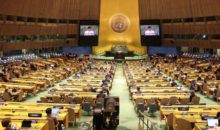 भूराजनीतिक प्रतिस्पर्धा, आर्थिक राष्ट्रवाद, शक्तिको उन्मादले गर्दा विश्वमा शान्ति र सुरक्षा कायम गर्न चुनौती थपिएको बताउँदै उनले संयुक्त राष्ट्रसङ्घको वडापत्रमाथि नै गम्भीर समस्या उत्पन्न भएको देखिएको टिप्पणी गरे । उनले विश्व समुदायलाई विद्यमान ‘कोर्ष’ परिवर्तन गरेर सबैको साझा लक्ष्य शान्ति, समृद्धि र प्रगति बनाएर अघि बढ्न आग्रह गरे ।