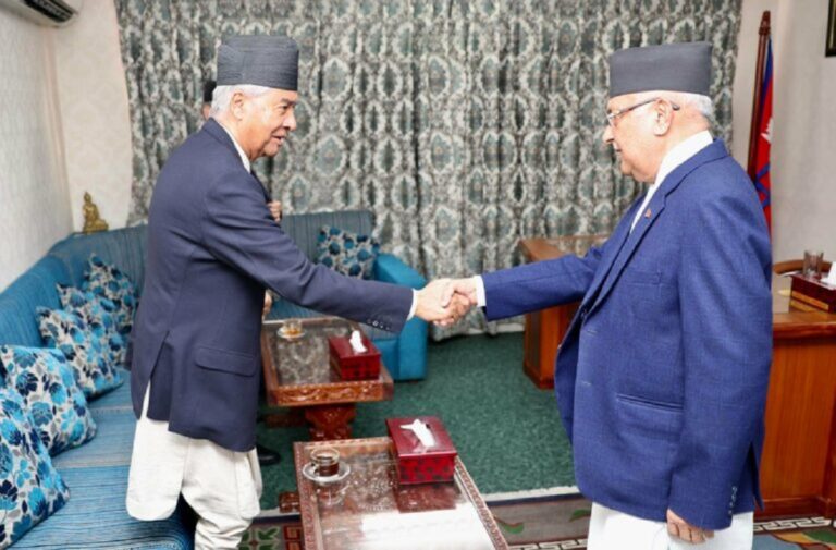 गत पुष १० गतेअघिको सन्दर्भ उल्लेख गर्दै ओलीले भने, ‘मैले भेटौं भनेको थिएँ, उहाँले नभेटौं भन्नुभयो । मैले कुराकानी गरौं भनेको थिएँ, उहाँले नगरौं भन्नुभयो । पछिल्लो समय शेरबहादुर देउवा मसँग भेट्न डराउनु हुन्छ । कुन शक्तिसँग डराउनु भएको हो थाहा छैन । तर, डराउनु हुन्छ ।’