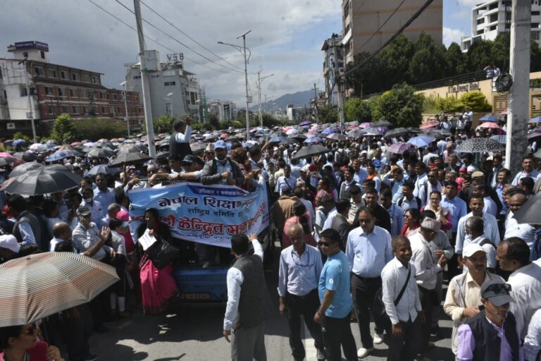 काठमाडौं, ७ असोज । नेपाल शिक्षक महासंघको आह्वनामा आन्दोलनमा होमिएका शिक्षकहरुले प्रदर्शन छाडेका छैनन् । महासंघ र सरकारबीचको छ बुँदे सहमतिमा असन्तुष्टि जनाउँदै राहत शिक्षक, पेन्सन बञ्चित शिक्षक, बाल विकास सहयोगी शिक्षक लगायत आन्दोलनमा रहेका छन् । उनीहरुले अहिले पनि माईतीघर मण्डलामा आन्दोलन जारी राखेका छन् ।