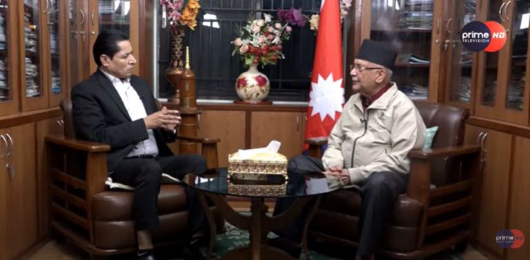 काठमाडौं । नेकपा (एमाले) का अध्यक्ष केपी शर्मा ओलीले नक्कली भुटानी शरणार्थी प्रकरणमा थुनामा रहेका नेता टोपबहादुर रायमाझीको बचाउ गरेका छन् । उनले रायमाझीलाई प्रतिशोध साँधेको टिप्पणी गरे । हिजो (शनिबार) राति प्राइम टाइम्स टेलिभिजनमा प्रसारण भएको जनता जान्न चाहन्छन् कार्यक्रममा पत्रकार ऋषि धमलासँगको कुराकानीमा ओलीले रायमाझीको बचाउ गरेका हुन् । उनले वर्तमान प्रधानमन्त्री पुष्पकमल दाहाल र गृहमन्त्री टोपबहादुर रायमाझीले माओवादी छाडेर एमालेमा लागेको कारण उनीमाथि प्रतिशोध साँधिएको आरोप लगाए ।
