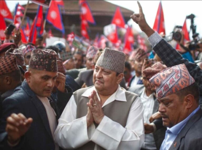 सो क्रममा शाहका समर्थकहरुले ‘हाम्रो राजा हाम्रो देश, प्राणभन्दा प्यारो छ’ भन्ने नारा लगाएका थिए ।