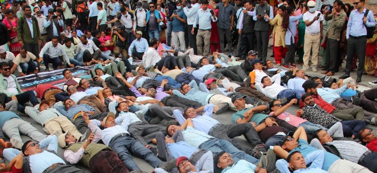 राहत, पेन्सन बञ्चित र बालबिकास लगायत शिक्षकहरु अहिले आन्दोलनमा छन् । आन्दोलनमा रहेको उनीहरुले आज सडकमै सुतेर प्रदर्शन गरेका थिए । राज्यले आफूहरुलाई लासजस्तै बनाएको भन्दै उनीहरुले सांकेतिक रुपमा लासजस्तै लम्पसार सुतेर प्रदर्शन गरेका हुन् । उनीहरु सडकमा आधा घण्टाभन्दा बढि समय सुतेका थिए ।