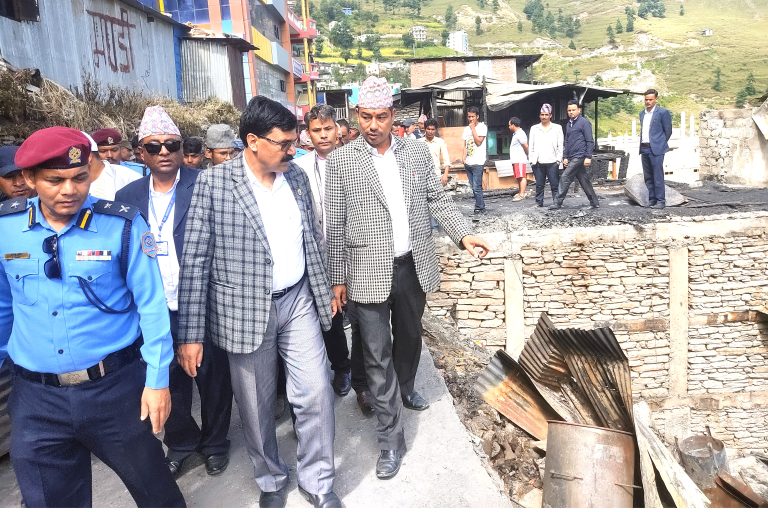 मुख्यमन्त्री शर्मासहित भौतिक पूर्वाधार, यातायात तथा सहरी विकासमन्त्री मङ्गलबहादुर शाही, कानुनमन्त्री कृष्ण जिसीको टोली आगलागी क्षेत्रको स्थलगत निरीक्षण गरी पीडित परिवारलाई प्रदेश सरकारका तर्फबाट राहत उपलब्ध गराएका हुन् ।
