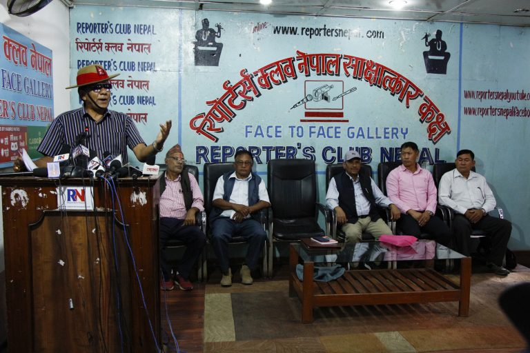 काठमाडौं, ९ असोज । संयुक्त भूतपूर्व सैनिक एवं प्रहरी संगठन नेपालका पदाधिकारीहरुले संस्थाको छैठौं महाविधेशन वैधानिक नरहेको बताएका छन् । आज (मंगलबार) रिपोर्टर्स क्लब नेपालमा पत्रकार सम्मेलन गरी उनीहरुले आज भइरहेको महाधिवेशन अवैधानिक रहेको बताएका हुन् ।