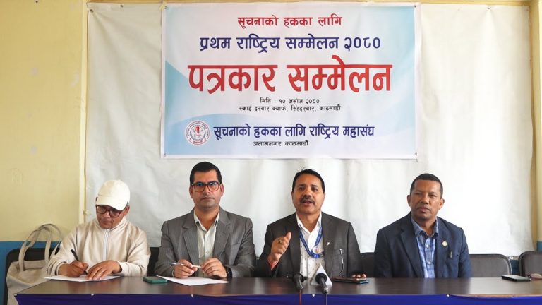 काठमाडौँ, ११ असोज । सूचनाको हकका लागि राष्ट्रिय महासङ्घले सूचनाको हकको अभियानलाई तल्लो तहसम्म पु¥याउन आज एक दिने राष्ट्रिय सम्मेलन आयोजना गरेको छ ।