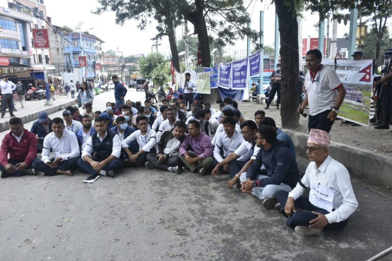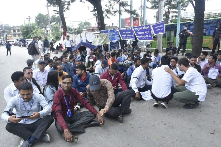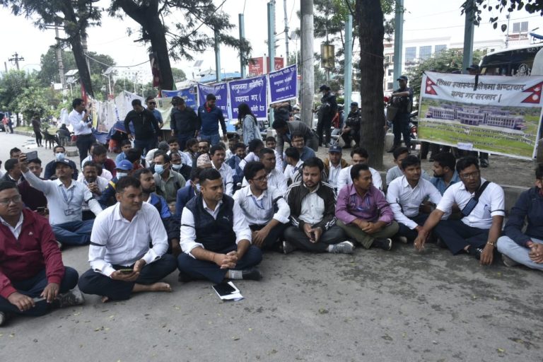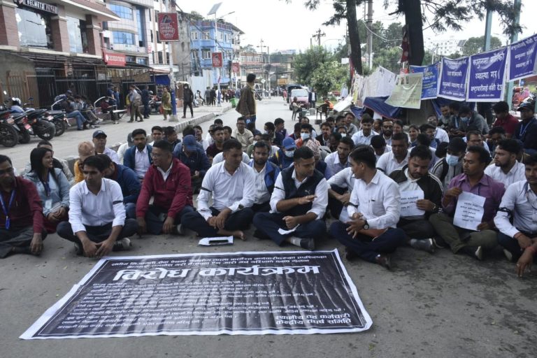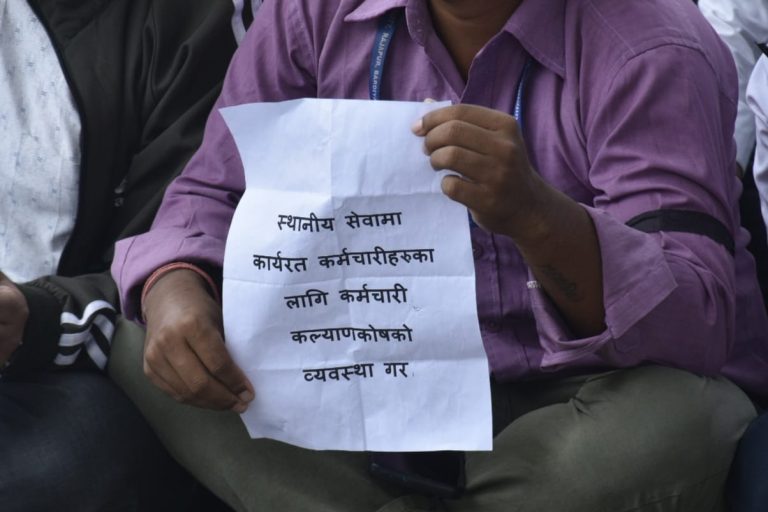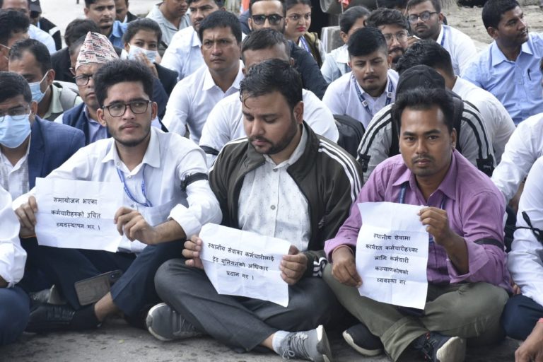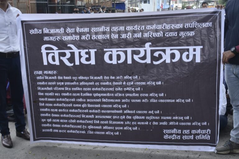 तस्बिरमा हेर्नुहोस् स्थानीय तहका कर्मचारीको विरोध प्रदर्शन