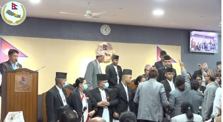 एमाले सांसदहरुको विरोधका बाबजुद पनि बहादुर लामाले प्रदेश प्रमुखबाट प्राप्त सन्देश पढिरहेका थिए । एमाले सांसदहरु थप आक्रमक देखिएपछि सभामुखले प्रस्तुति रोक्नका लागि निर्देशन दिए ।